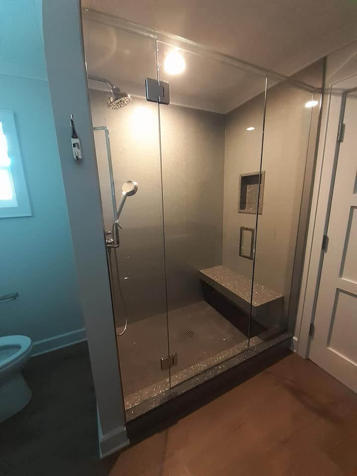 Browse our Idea Gallery to see examples of custom shower enclosures, office partitions, mirrors, glass railings, and decorative glass. Discover innovative designs and expert craftsmanship to inspire your next project.